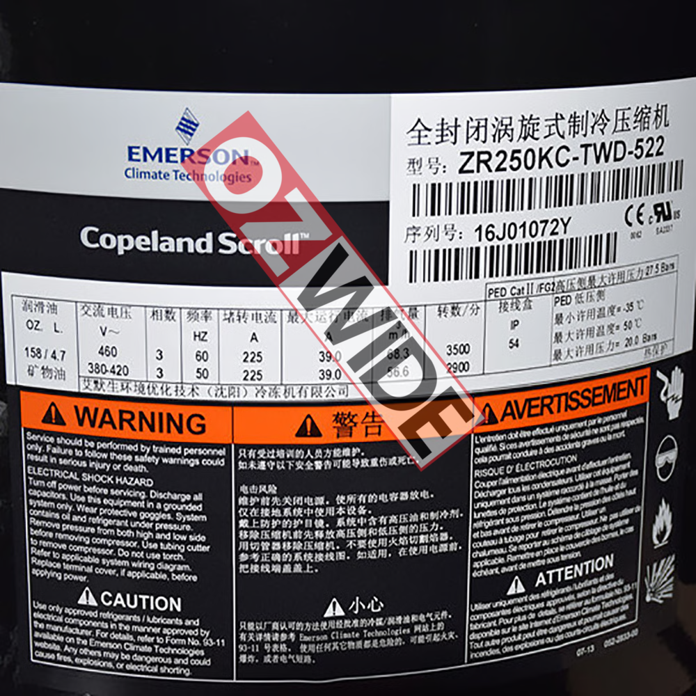 Copeland Refrigeration Compressor Cooling ZR250KC-TWD-522
